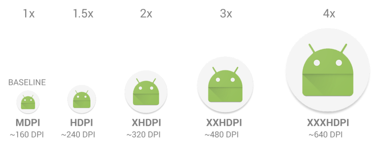 위 이미지는 안드로이드 해상도별 이미지 사이즈에 대한 정보이다. 하나의 이미지를 해상도별 5가지 파일로 만들어 안드로이드 프로젝트의 리소스 폴더에 drawable-hdpi ... 등의 폴더에 나눠서 넣어야 한다. 이는 iOS도 마찬가지로 해상도별 이미지를 만들어 xcode 프로젝트에 각각 넣어주어야 한다.