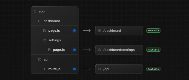 app 폴더 내에 dashboard 라는 폴더내에 page.js 혹은 page.tsx 파일을 위치시키면 /dashboard라는 주소로 해당 페이지에 접근할 수 있습니다.