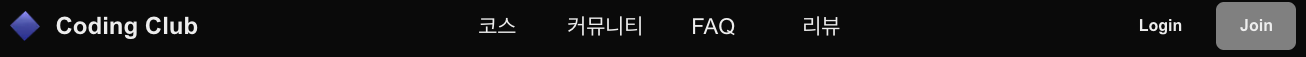 네비게이션바는 앞단의 로고와 중단에 메뉴아이템 우측 버튼들로 구성합니다.
